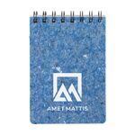 WoW! A6-Notebook with spiral bound, approx. 96 sheets/192 pages wood-free offset, lined paper (90 g/m²). The cover is made from upcycled textiles. Old textiles are collected and transformed to felt. Felt is a nonwoven material made by compressing the fibers with heat, moist and pressure. Social workplaces laser-cut the sheets and fix it to the notebooks. Optional: Each item supplied in an individual brown cardboard box.